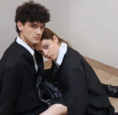 Desde el inicio del diseño tuve claro que esta idea debía expresarse de forma casi gráfica. Por eso las prendas son versátiles, transformables, pensadas para funcionar tanto de manera individual como en conjunto. Cada pieza dialoga con otra desde la dualidad: estructura y fluidez, contención y movimiento, lo visible y lo que permanece oculto. No hay una lectura única, sino varias capas que conviven dentro de un mismo modelo.