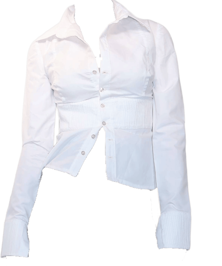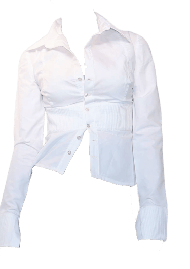 La camisa Renée parte de una referencia más íntima. Es una camisa ajustada, con frunces bajo el pecho y en los puños, disponible en blanco y negro. Una pieza clásica que resalta la figura y encuentra el equilibrio entre delicadeza y estructura, manteniendo una elegancia que no depende de tendencias pasajeras.